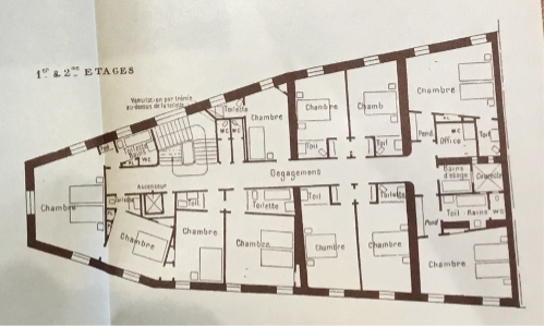 Source : AD des Alpes-Maritimes, 05ETP 427. Conseils techniques pour l’architecture et les installations hôtelières, publié par le Crédit National Hôtelier, 1927, p. 35.|]